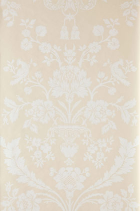 An 18th-century French damask paper originally produced in 1793 at St Antoine. Full roll width is 53cm/21″, roll length is 10m/11yds, pattern repeat is 85cm/33 12″.