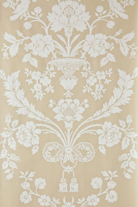 An 18th-century French damask paper originally produced in 1793 at St Antoine. Full roll width is 53cm/21″, roll length is 10m/11yds, pattern repeat is 85cm/33 12″.