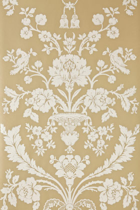 An 18th-century French damask paper originally produced in 1793 at St Antoine. Full roll width is 53cm/21″, roll length is 10m/11yds, pattern repeat is 85cm/33 12″.
