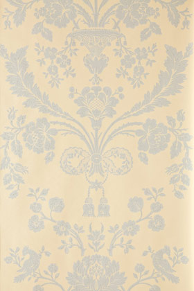 An 18th-century French damask paper originally produced in 1793 at St Antoine. Full roll width is 53cm/21″, roll length is 10m/11yds, pattern repeat is 85cm/33 12″.