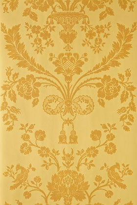 An 18th-century French damask paper originally produced in 1793 at St Antoine. Full roll width is 53cm/21″, roll length is 10m/11yds, pattern repeat is 85cm/33 12″.