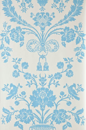An 18th-century French damask paper originally produced in 1793 at St Antoine. Full roll width is 53cm/21″, roll length is 10m/11yds, pattern repeat is 85cm/33 12″.