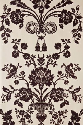 An 18th-century French damask paper originally produced in 1793 at St Antoine. Full roll width is 53cm/21″, roll length is 10m/11yds, pattern repeat is 85cm/33 12″.