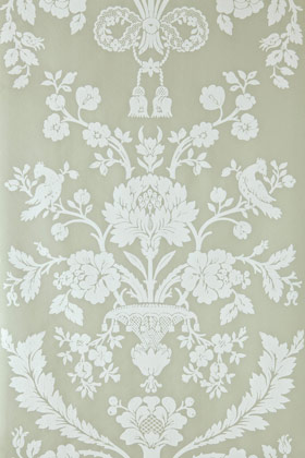An 18th-century French damask paper originally produced in 1793 at St Antoine. Full roll width is 53cm/21″, roll length is 10m/11yds, pattern repeat is 85cm/33 12″.