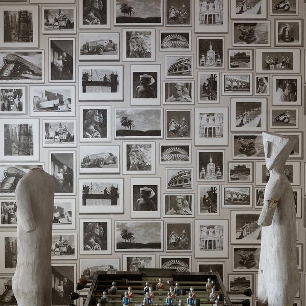 An edgy, photographic wallpaper featuring cool, monochrome portraits and architecture set on a textured background. It slots nicely into our Museum Collection. Fantastic for feature walls, hallways, stairs and landings.