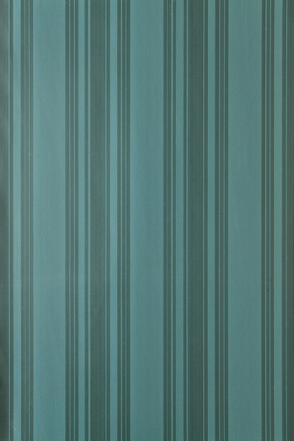 Tented Stripe, a collection of tented and traditional 5.25″ broad stripes produced using Farrow & Ball colours and our finest water based paints. Tented Stripe 13106 in bespoke green and Monkey Puzzle No.238 (archived).Full roll width is 53cm/21″, roll length is 10m, stripe size is 12cm/4 3/4″. Available in 14 colourways.