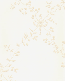 Toile Trellis is based on an original 18th-century fabric design. This is a quietly nostalgic wallpaper, featuring delicate leaf motifs and romantic bows that create a warm, idyllic feel. Full roll width is 53cm/21″, roll length is 10m/11yds, pattern repeat is 62cm/24 1/3″.