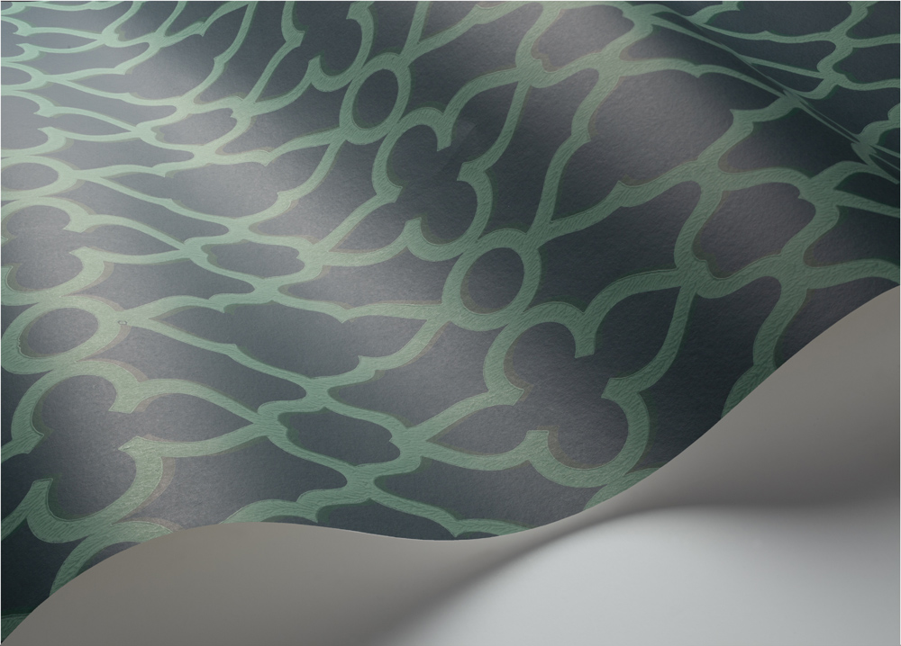 Treillage, meaning lattice trellis, is a beautiful three-dimensional geometric print that can be used as a stand-alone paper or coordinated with many other designs from The Pearwood Collection. Presented in a garden palette of Leaf Green on Chalk; as well as the striking White on Hyacinth; a dusky Viridian on Ink; Cerulean Blue on Midnight; and Metallic Bronze on Charcoal.