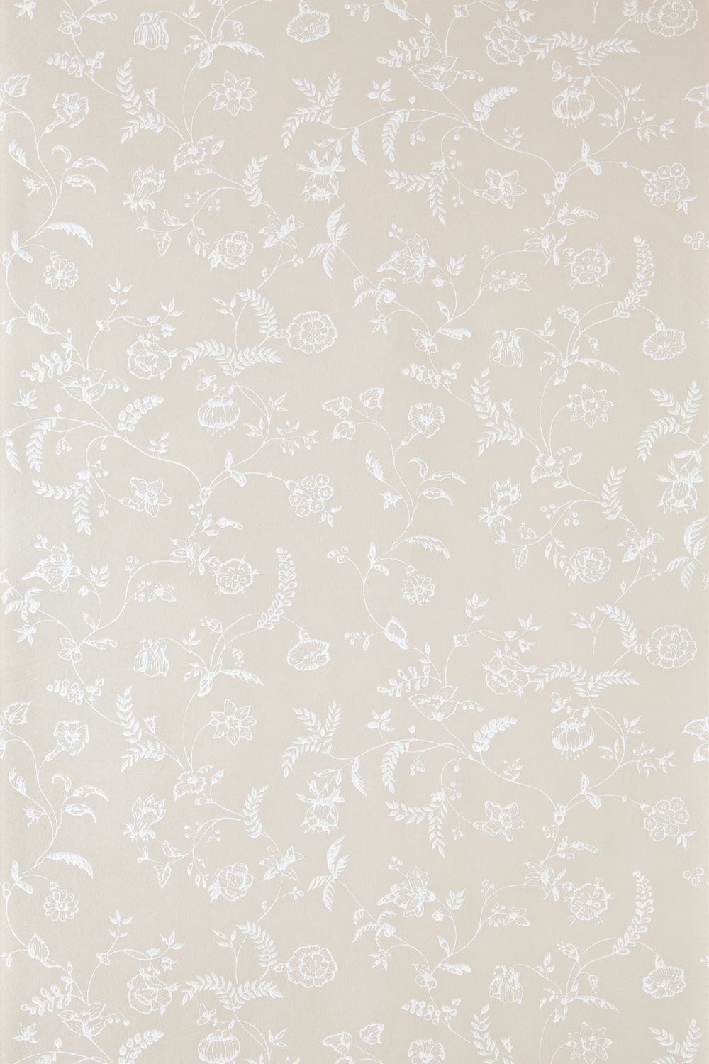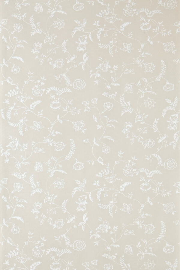 An 18th century design from the bedrooms at Uppark House. With delicate catkins, wispy vines, and blossoming floral motifs, Uppark is graceful, captivating and elegant. Uppark 523 in Skimming Stone No.241 and All White No.2005.Full roll width is 53cm/21″, roll length is 10m and pattern repeat is 48cm/19″. Available in eight colourways.