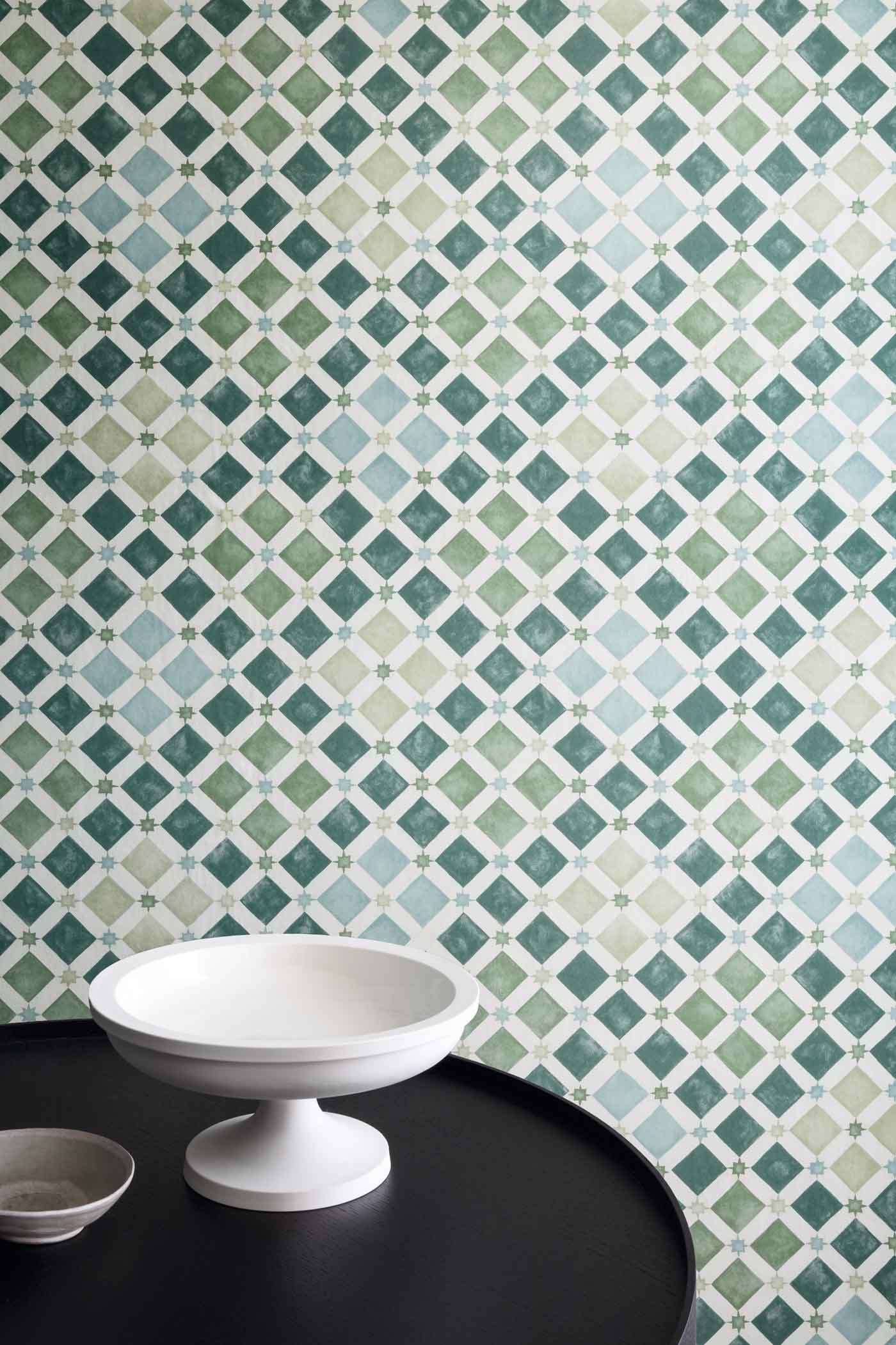 ‘Zellige’ takes its name from the Arabic expression for mosaic tilework, one of the most notable aspects of Moroccan architecture. When creating the design, Martyn and the Cole and Son studio were keen to retain the feel of real ceramic glazed Moroccan tiles and so the design has been hand-rendered to retain a beautiful, organic texture. Staying true to a traditional north African-style palette, Zellige is presented in China Blue and White, Olive and Print Room Blue, Spice and Charcoal, and the monochromatic Soot and Snow.